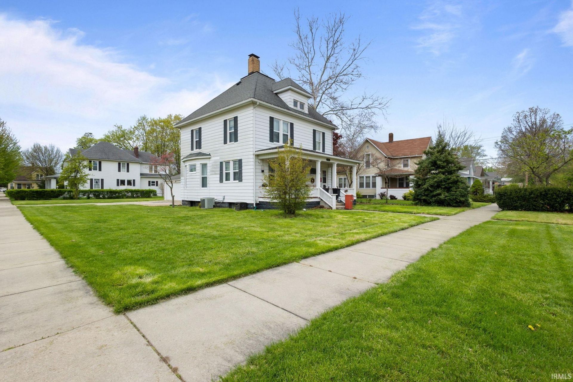 Furnished two story home near the popular Riverside Drive area in Elkhart. So much character throughout this well maintained charming home. The main level holds a living room with wood burning fireplace, formal dining area, kitchen, half bath with stackable washer/dryer, and mudroom as you enter the back door. Upper level with 3 large bedrooms, full bathroom with tub/shower combination and a walk in closet with window. The unfinished basement offers plenty of storage space or room for a workshop. Relax on the oversized covered front porch. Detached 2 car garage. Some updates include new garage door, stackable washer/dryer, all new blown in insulation in attic, refrigerator, and stove/oven. Nothing to do but move in! Fully furnished! Close to schools, restaurants, shopping, etc. Don't miss out on this one. Schedule your showing today!